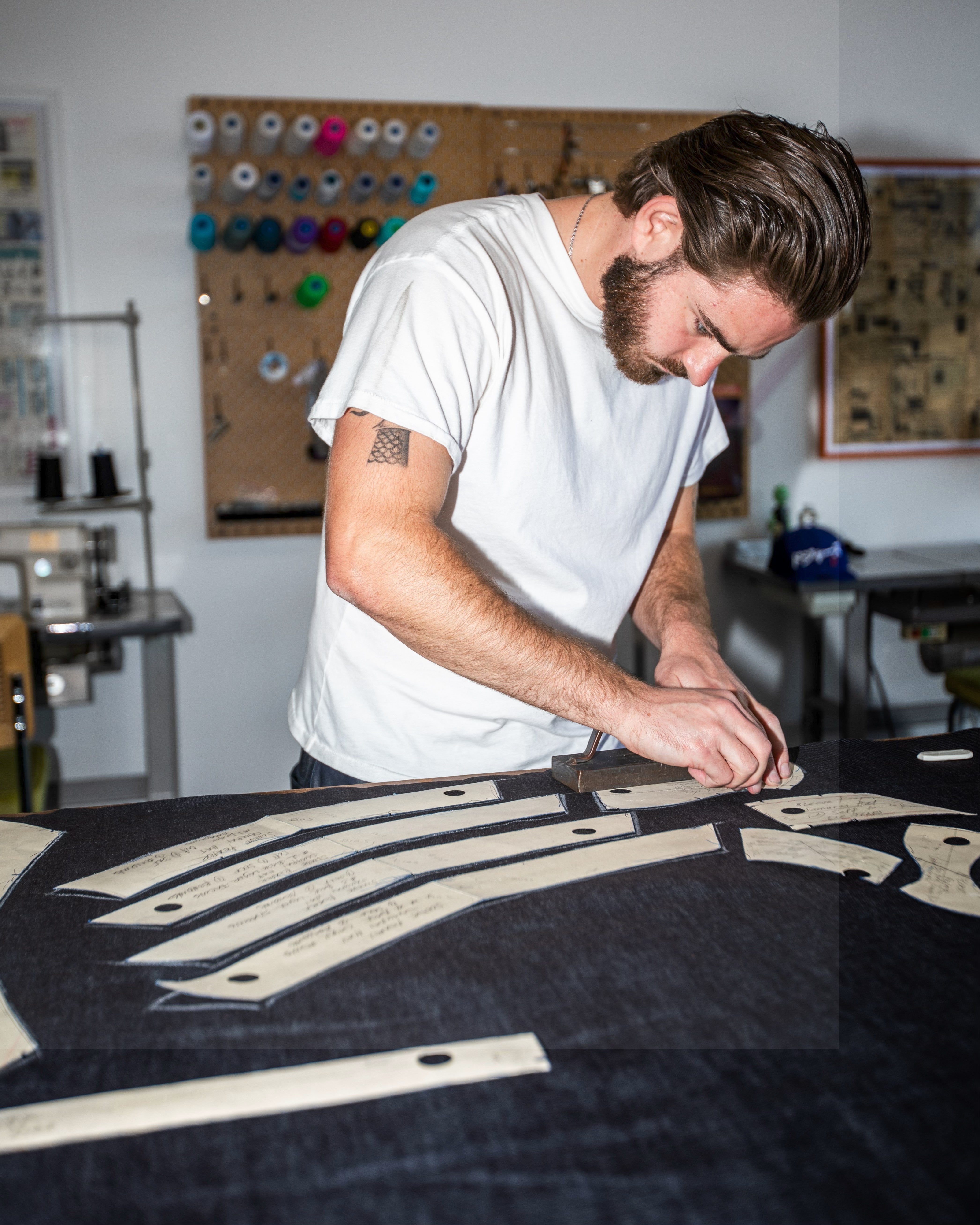 Our first version of the kabuto, handmade Japanese denim pieces sewn directly into a trucker hat.